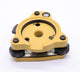 The Mountlaser FDJ01G Tribrach Adapter top plate has three small holes or slots spaced 120˚ apart above leveling thumbscrews, and a locking mechanism which enables a survey instrument or target to be accurately placed on the tribrach and locked in place.